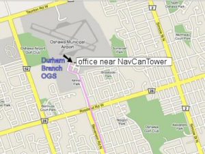 Photo of parking lot, Durham Branch Office and NavCan Tower, looking East.